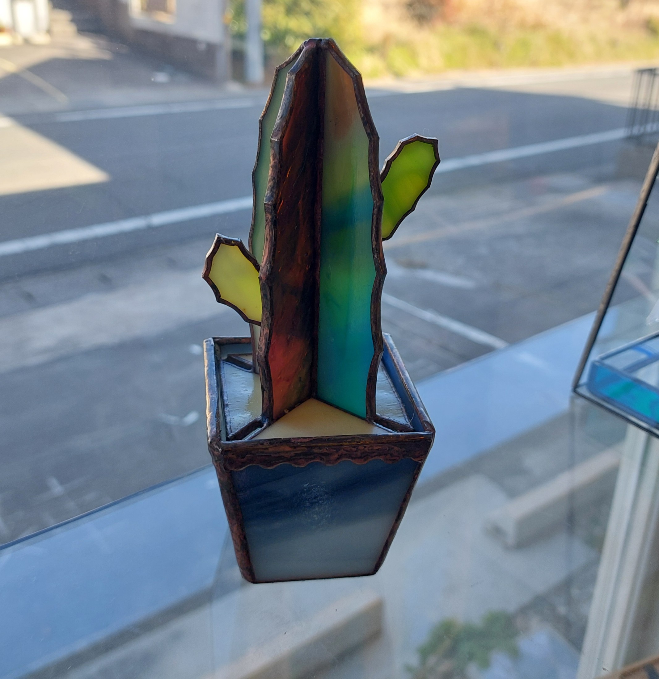 ガラスのカットの仕方、はんだの付け方にこだわり、まるで本物のサボテンのように棘がありそうなフォルムに仕上がっています。