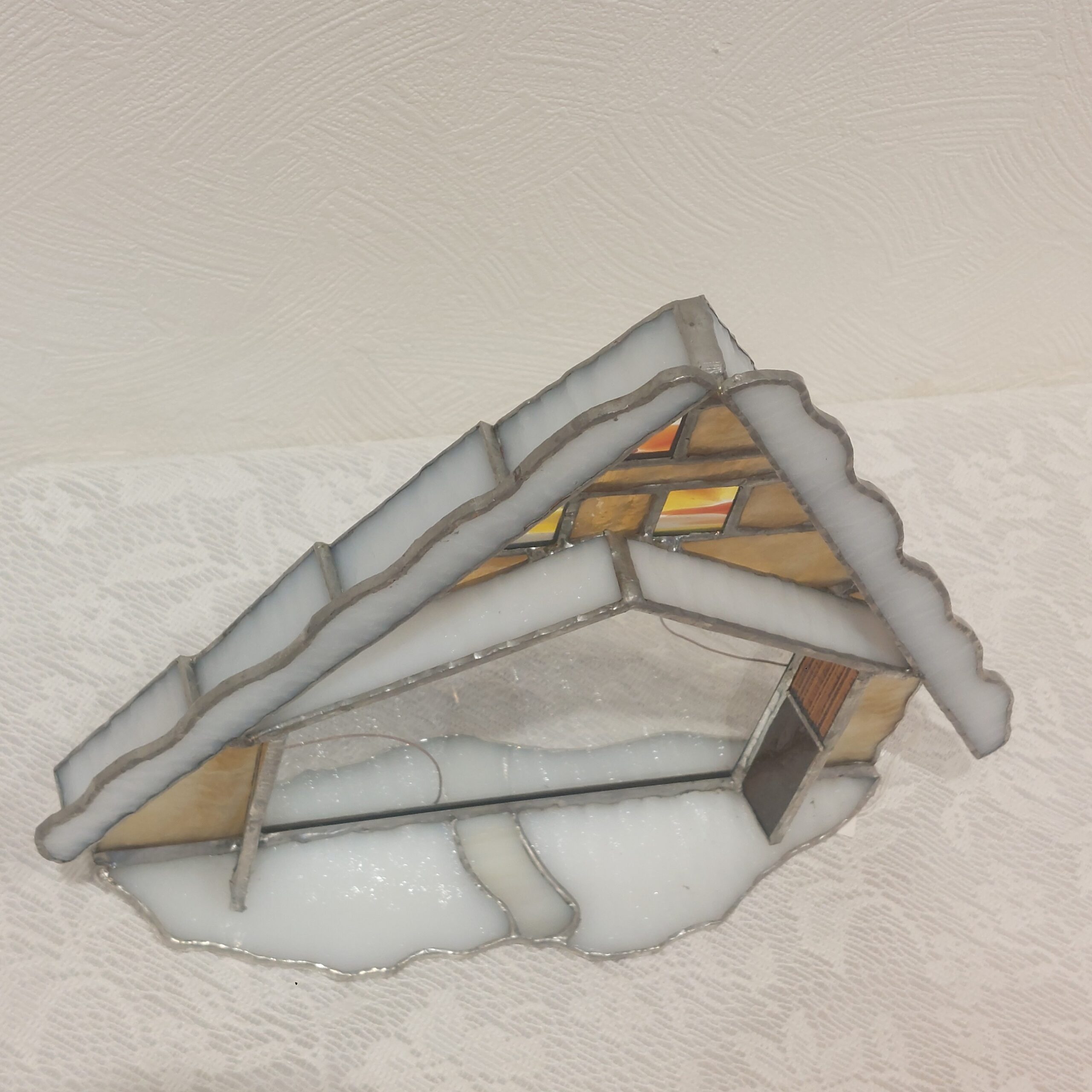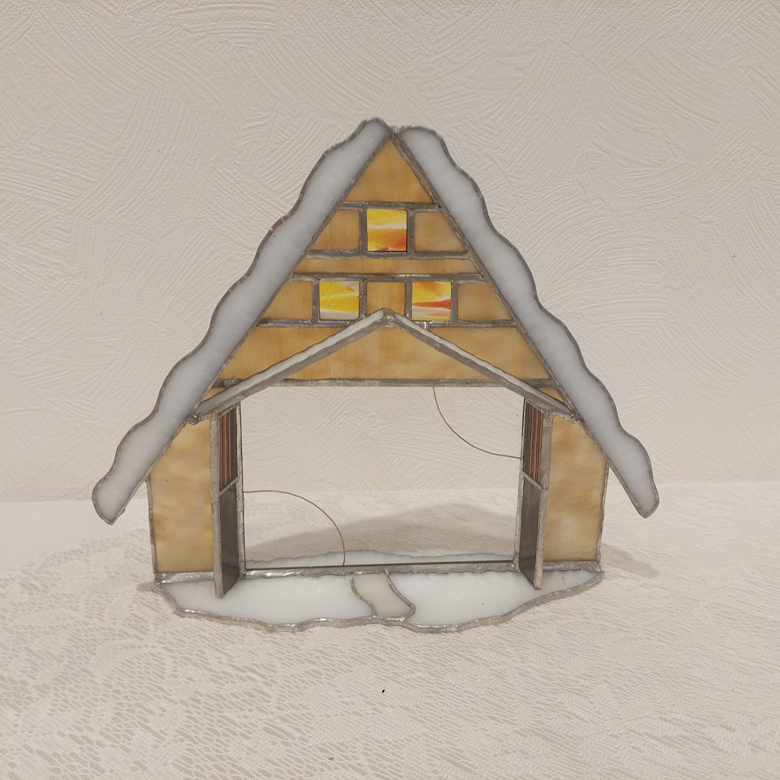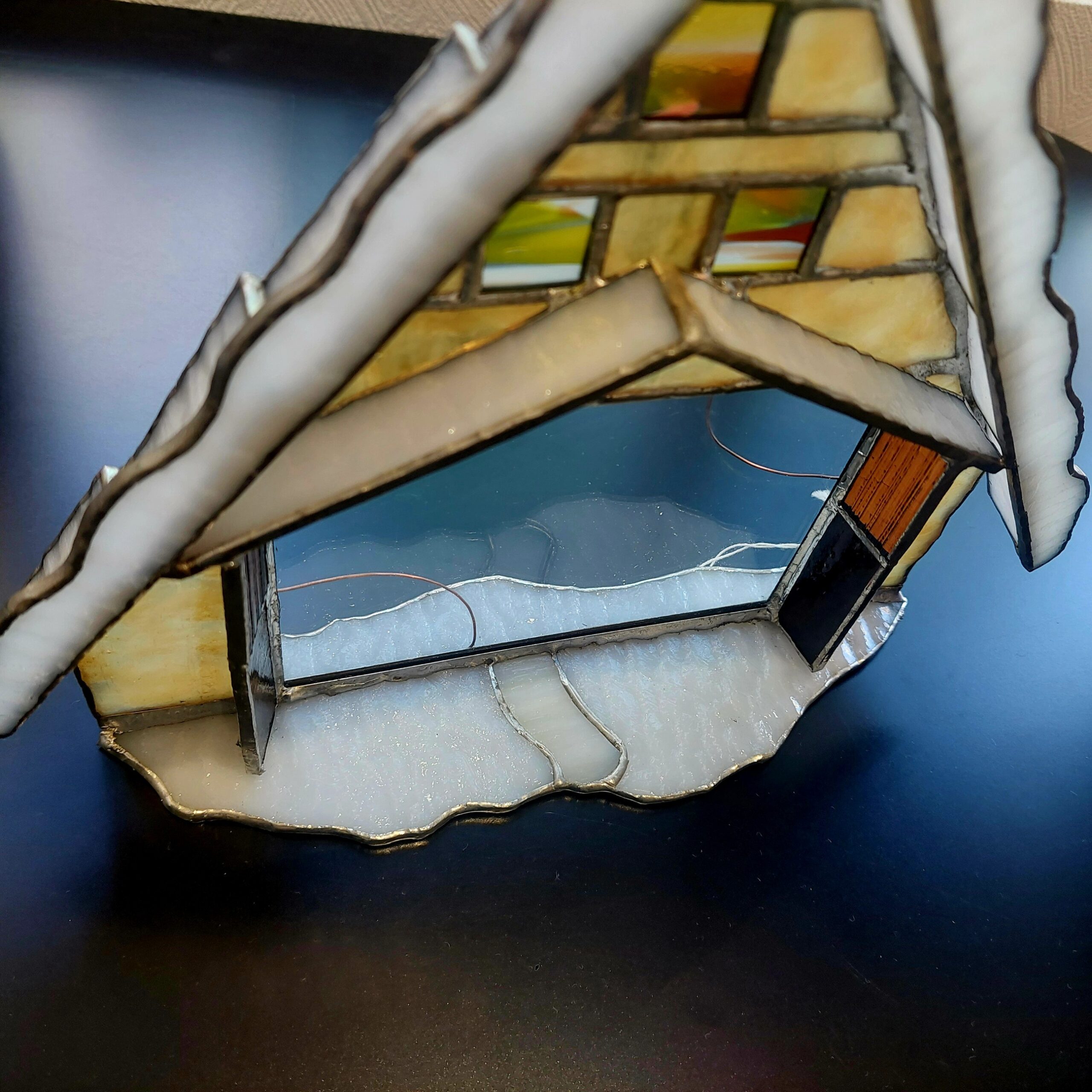 屋根や地面に凹凸のある乳白色のガラスを使用し、冬の雪の積もった合掌造りの家を表現しました。