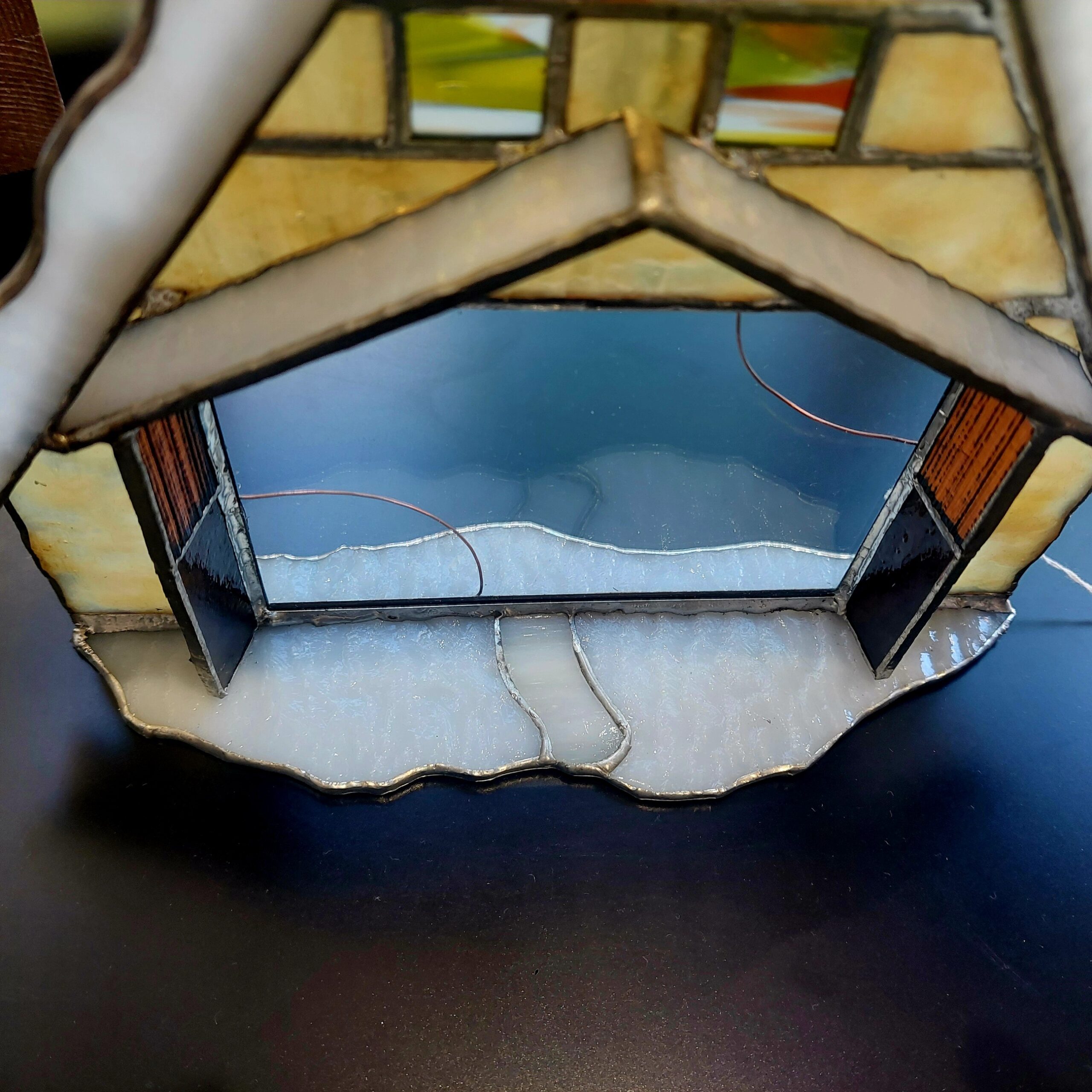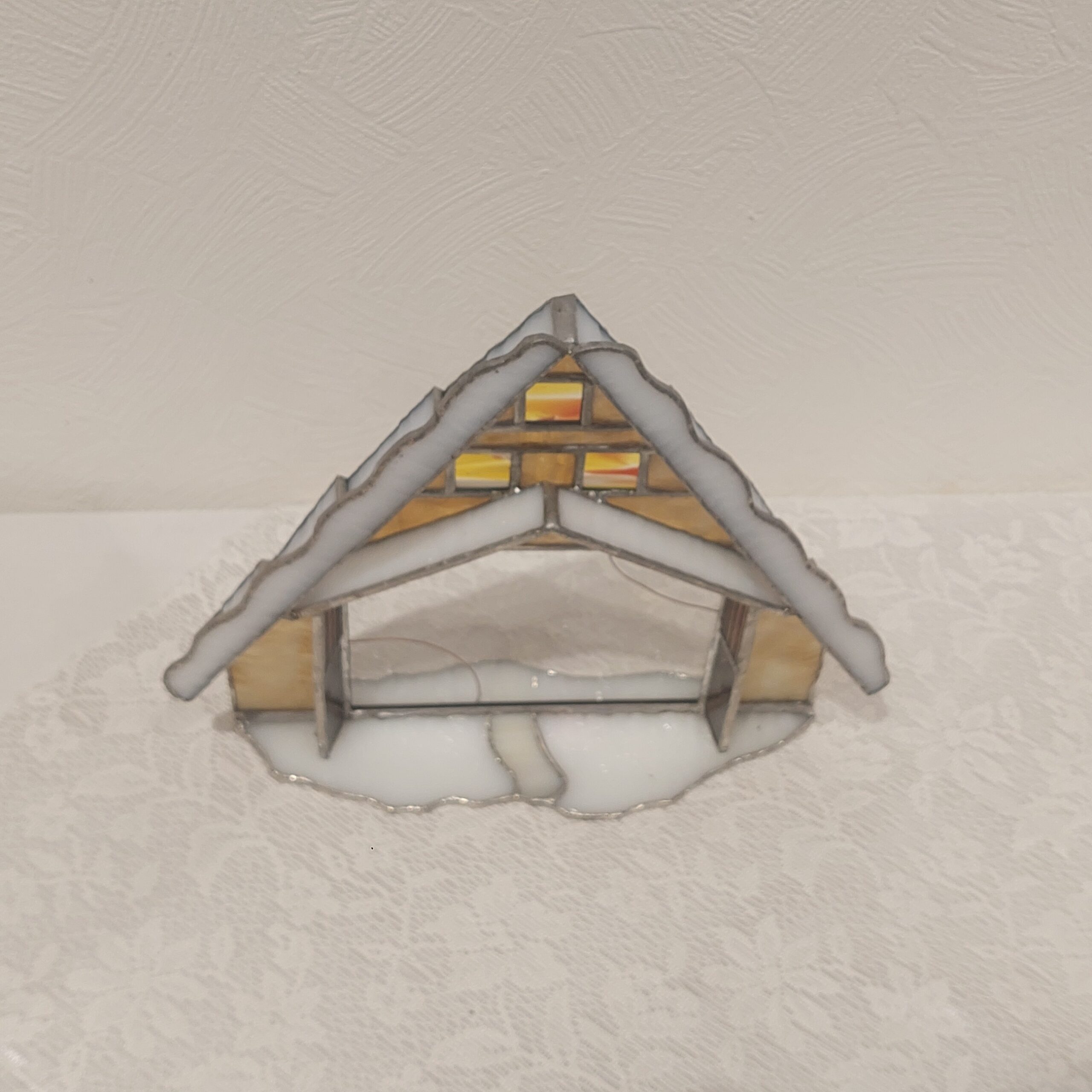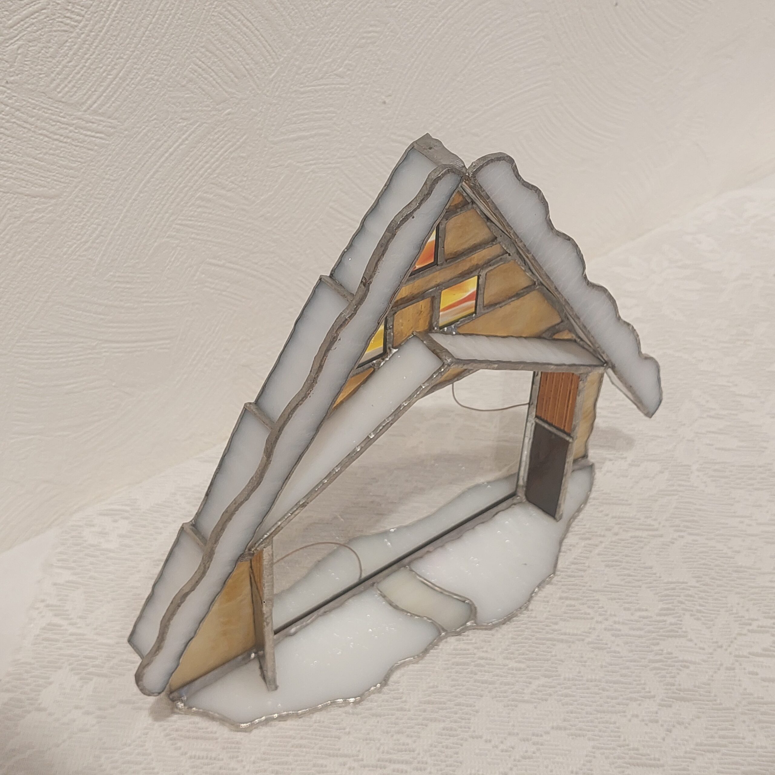 屋根や地面に凹凸のある乳白色のガラスを使用し、冬の雪の積もった合掌造りの家を表現しました。